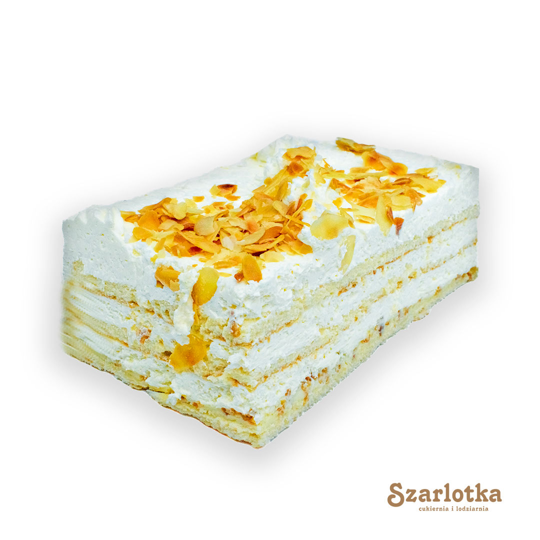 Ciasto rafaello to delikatne, kremowe ciasto inspirowane popularnymi pralinkami o smaku kokosa i migdałów. Jest lekkie, wilgotne i pachnące kokosem, co sprawia, że idealnie sprawdza się na specjalne okazje. Podana cena dotyczy kg ciasta.