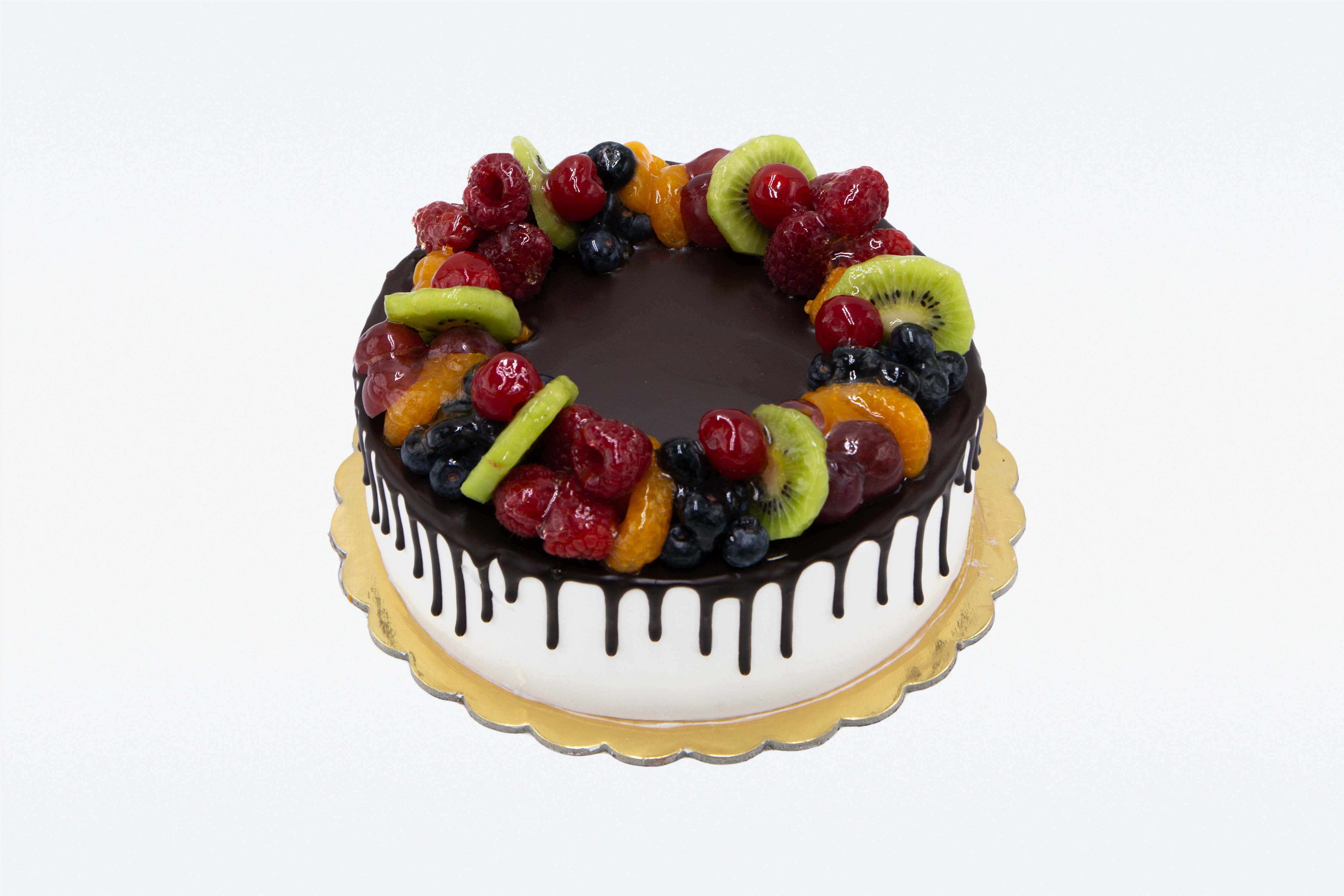 Dla dzieci i dorosłych, polecamy owocowy zawrót głowy, który zapewni tort Drip cake owocowy. Owoce ułożone są na delikatnej polewie czekoladowej. Pieczemy najlepsze ciasto biszkoptowe do wyboru jasne lub ciemne, przełożone prawdziwą bitą śmietaną. Miłą i smaczną niespodzianką jest warstwa tortu z owocowej frużeliny.