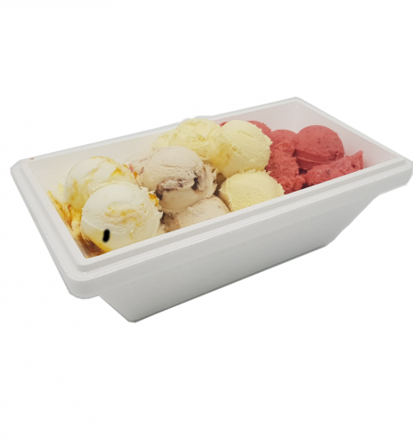 Duży lód Box to zestaw maksymalnie 12 gałek lodów w wybranych smakach. Jedna gałka to około 70g.