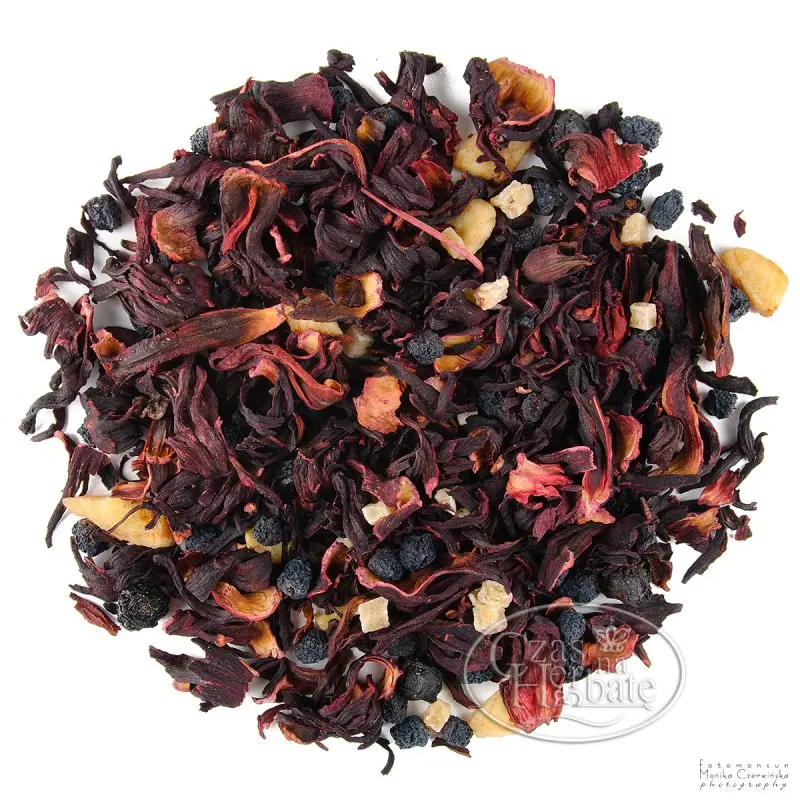 Składniki: ananas, banan, jagoda, rodzynki, hibiskus, wiśnia, aromat