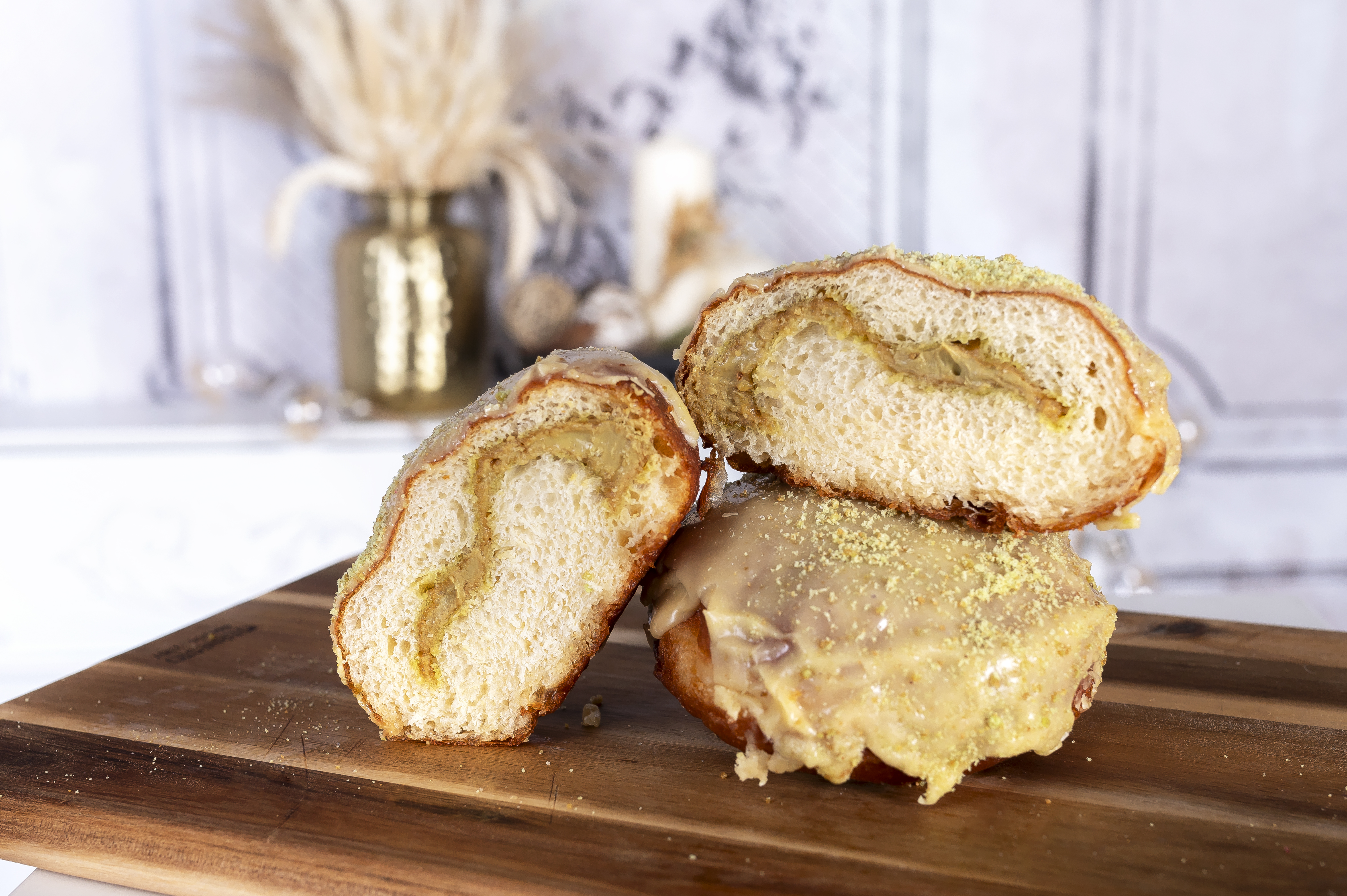 Pączek pistacjowy to elegancka i wyjątkowa wersja tradycyjnego pączka, w której główną rolę odgrywa krem pistacjowy. Jest idealnym wyborem dla miłośników luksusowych wypieków.