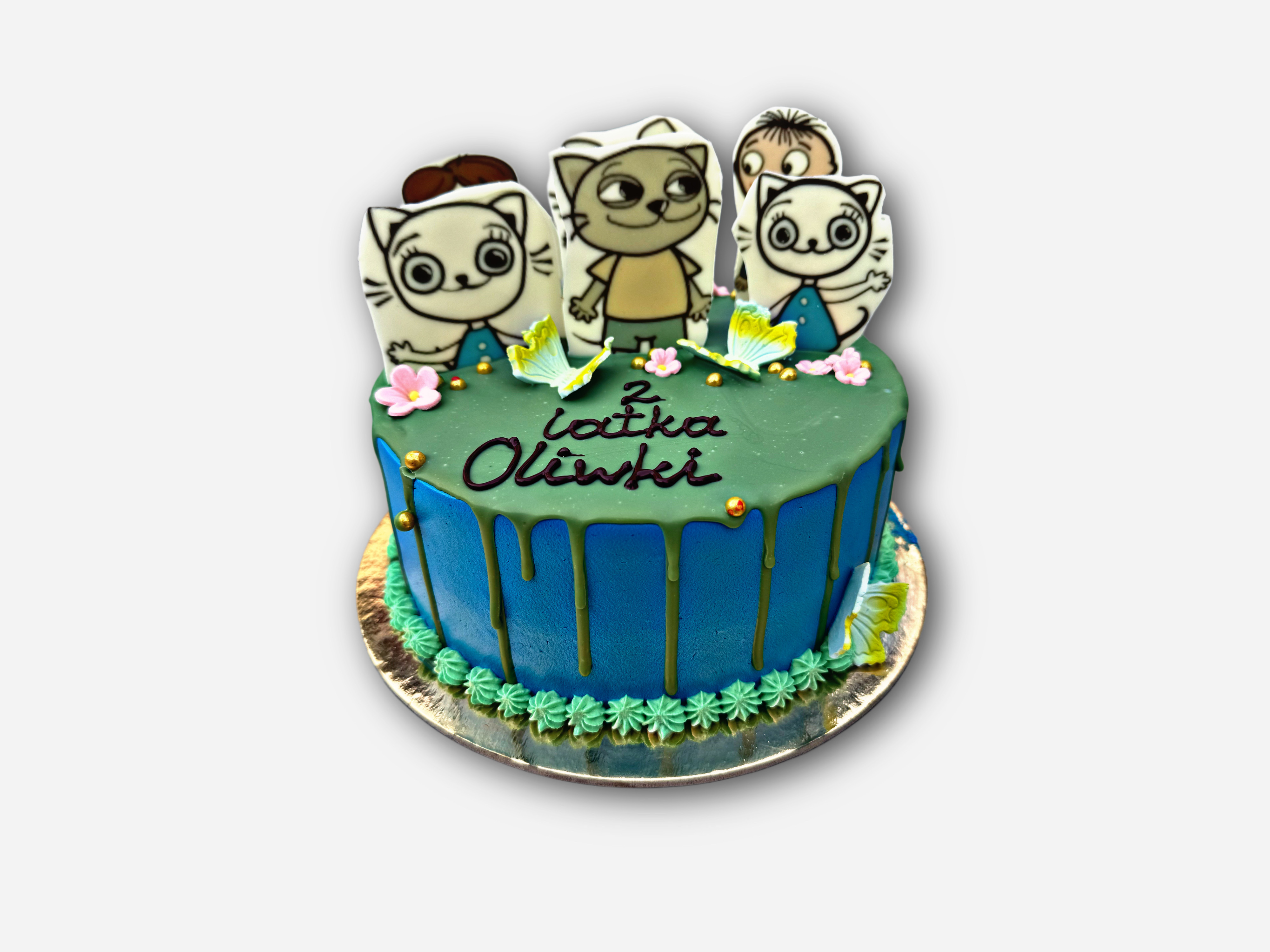 Tort " Bajkowa Gromadka - Kicia Kocia " to kolorowa i radosna propozycja idealna na dziecięce urodziny.  Całość wygląda bardzo słodko, kolorowo i idealnie pasuje na urodzinową uroczystość.