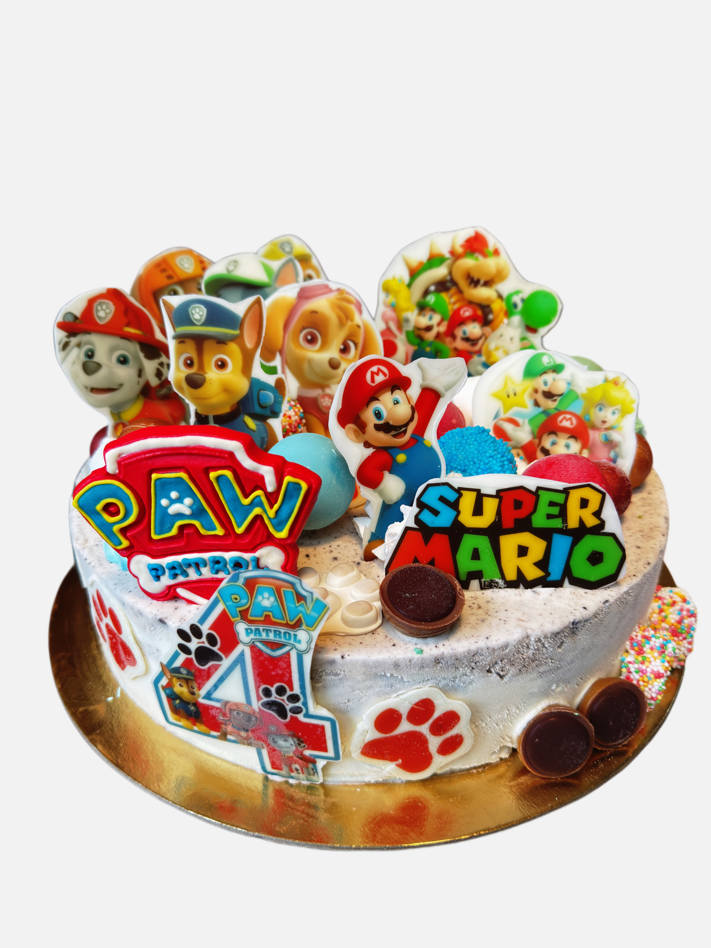 Ten kolorowy tort to prawdziwa gratka dla fanów Psi Patrol i Super Mario! Idealny wybór na urodziny dziecka, które kocha przygody, akcję i swoje ulubione postacie z bajek.