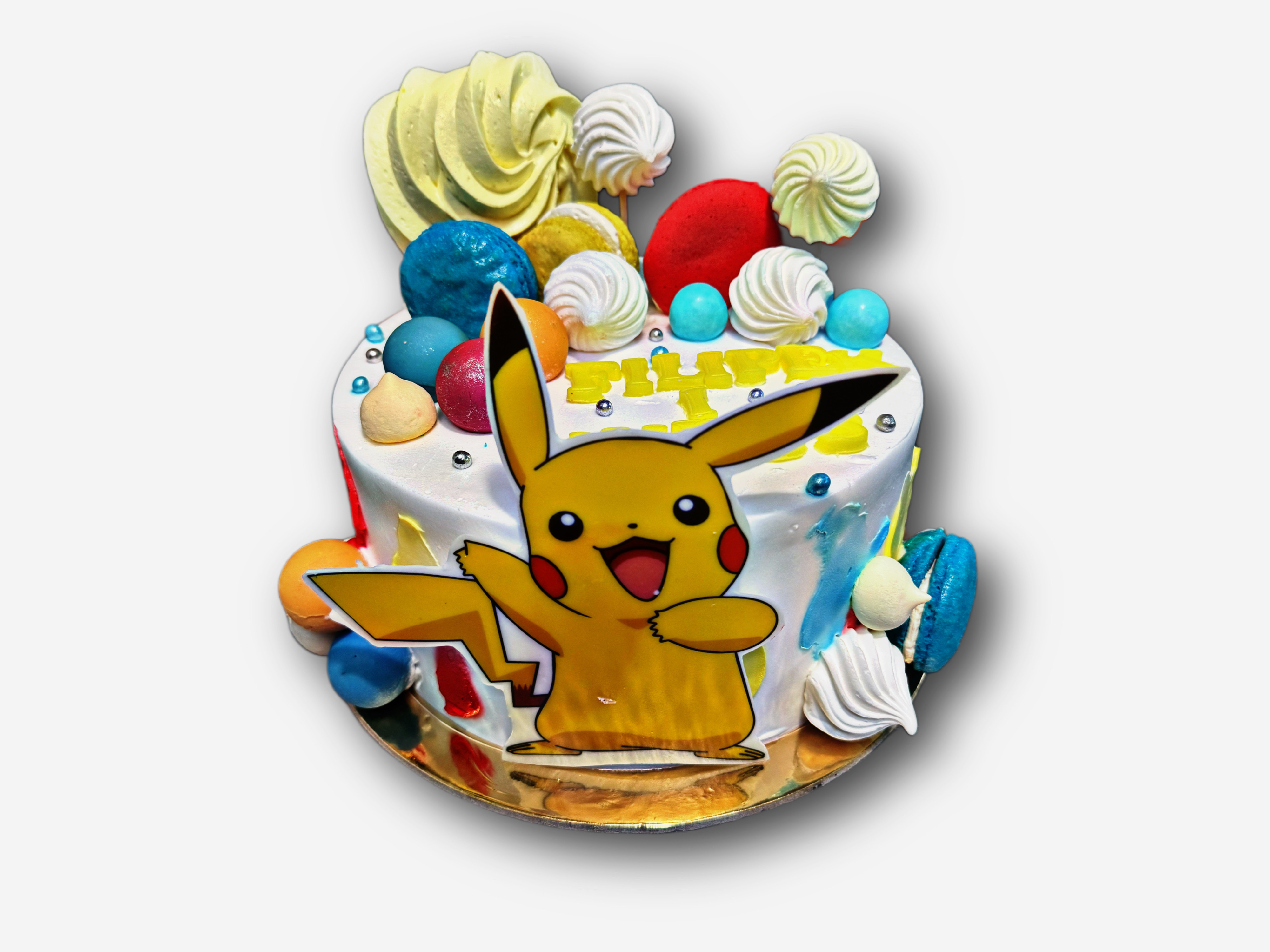 Kolorowy tort z radosnym Pikachu, pełen energetycznych barw, bezików i słodkich dekoracji. Idealny dla małego fana Pokemonów- wesoły , dynamiczny i gwarantujący uśmiech od pierwszego spojrzenia.