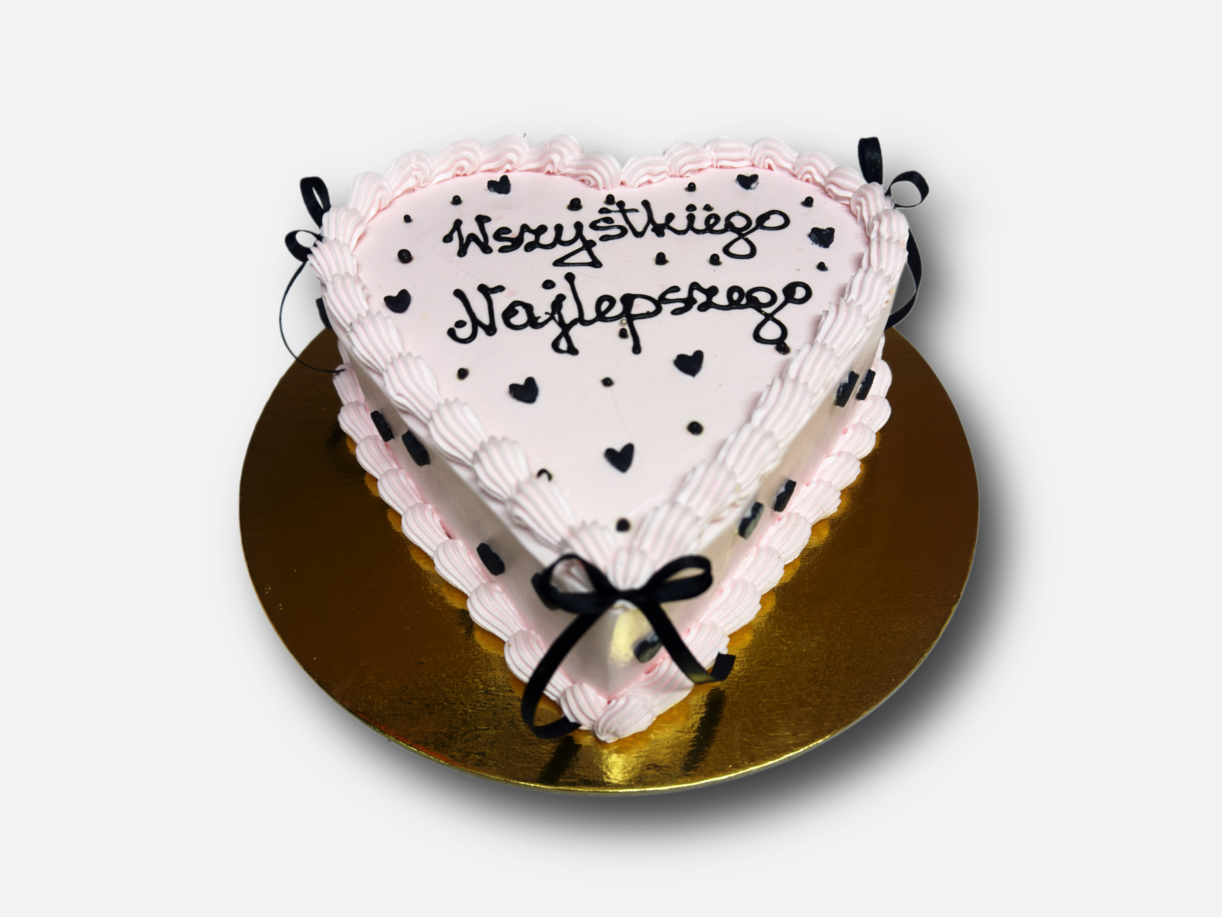 Tort , który mówi więcej niż tysiąc słów. Delikatny tort w kształcie serca wykończony klasyczną elegancją.