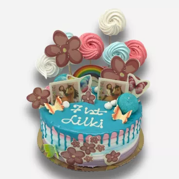 - krucha babeczka z masą budyniową udekorowana owocami
