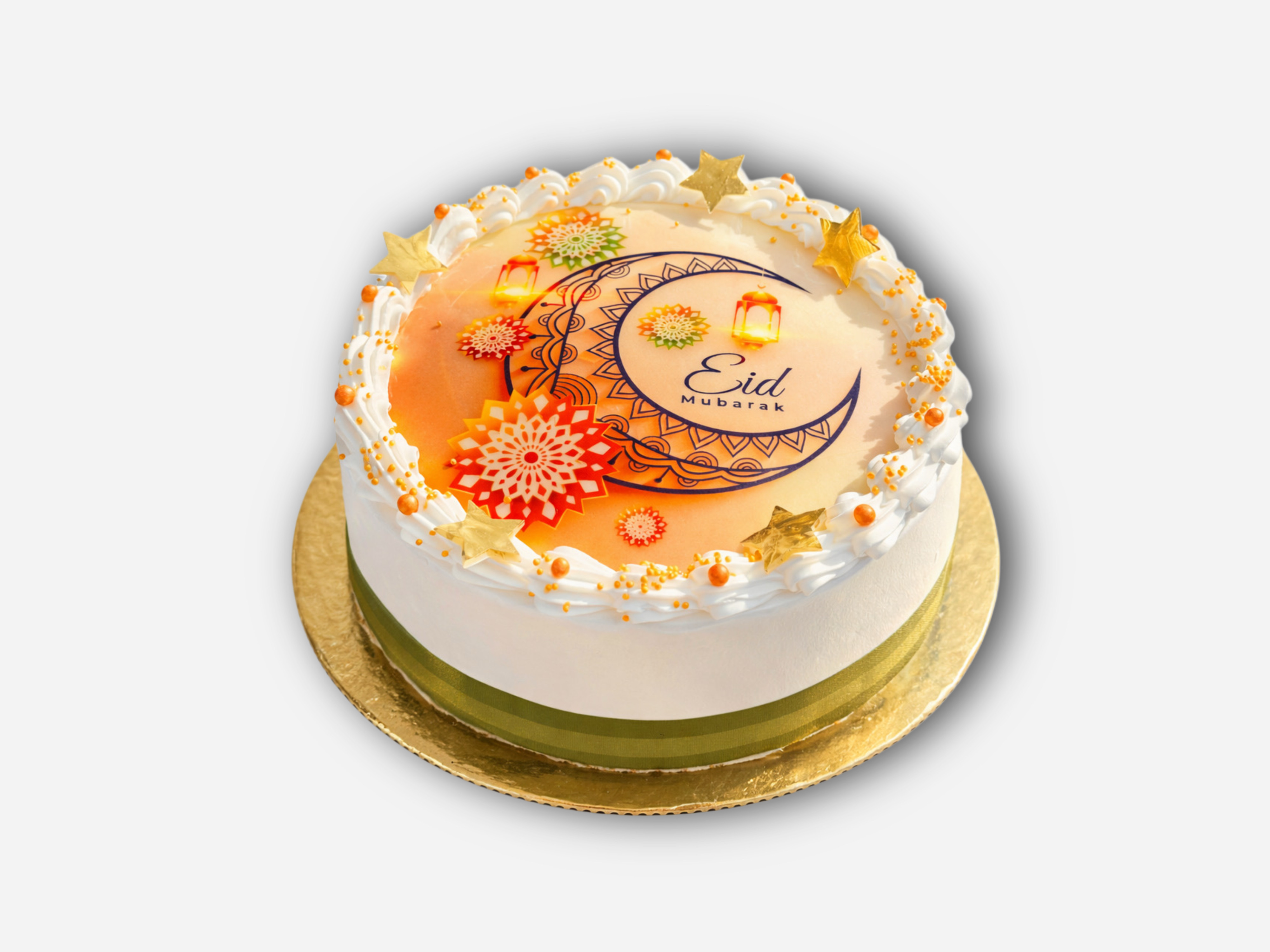 Wyjątkowy tort okolicznościowy " Złoty Blask Eid " to połączenie subtelnej elegancji i świątecznego uroku.  Jego powierzchnię zdobi wysokiej jakości opłatek jadalny z efektownym, personalizowanym nadrukiem, który nadaje całości niepowtarzalny charakter. Kompozycję dopełniają starannie wykonane dekoracje: delikatne, cukrowe gwizdki, subtelna pomarańczowo - złota posypka oraz lekka, kremowa obwódka, podkreślająca finezyjny styl tortu. Całość utrzymana jest w ciepłej, złocisto - pomarańczowej tonacji, przywodzącej na myśli blask i radość wyjątkowych chwil.  To idealny wybór na eleganckie uroczystości - tort, który zachwyca zarówno wyglądem, jak i dbałością o detale.